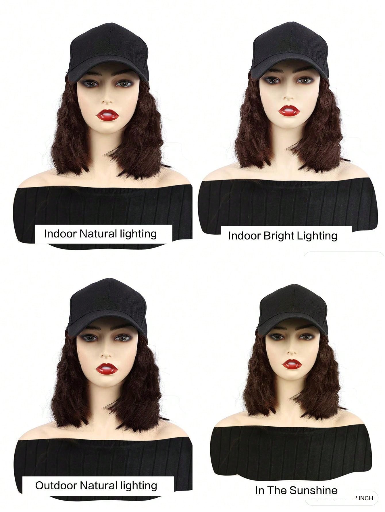 Hat Wig Medium Long Curly Bob Cut Hat Wig Synthetic Wig Beginners Friendly Natural Looking For Daily Use