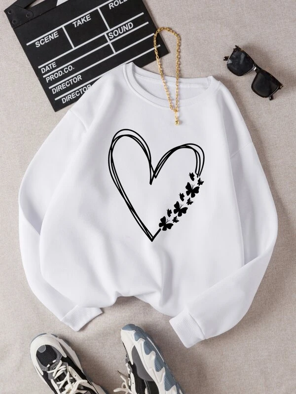 SHEIN Essnce Heart & Butterfly Print Thermal Lined Sweatshirt