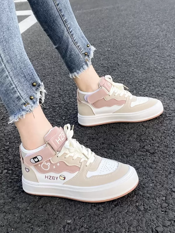 Heart & Letter Graphic High Top Lace-up Front Skate Shoes, Multicolor Sports Alphabet Sneakers