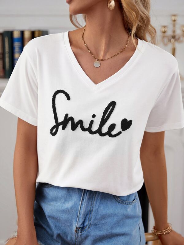 SHEIN Frenchy Heart & Letter Pattern Drop Shoulder Tee