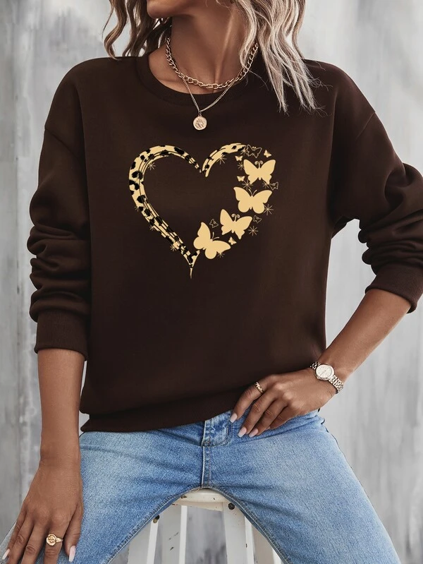 SHEIN Unity Heart And Butterfly Print Drop Shoulder Sweatshirt