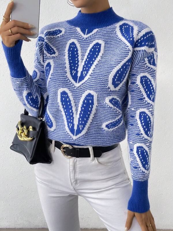 SHEIN Essnce Heart Pattern Drop Shoulder Sweater