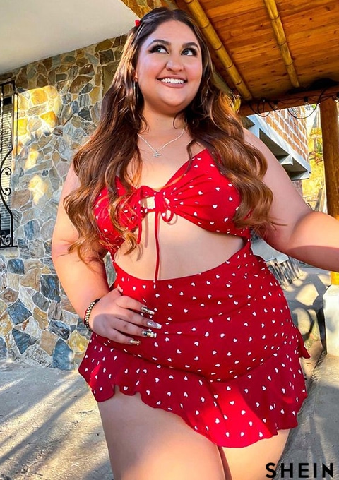 SHEIN SXY Heart Print Tie Front Cut Out Ruffle Romper