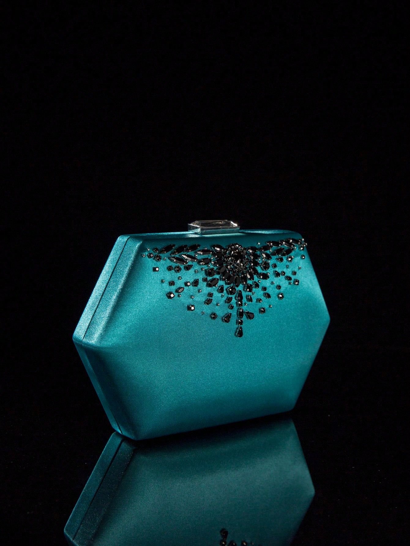 Hexagonal Rhinestone Decorated Evening Clutch Bag For Women, Heavy Industries Hand Stitched Elegant Box Handbag Ideal For Parties, Proms And Weddings