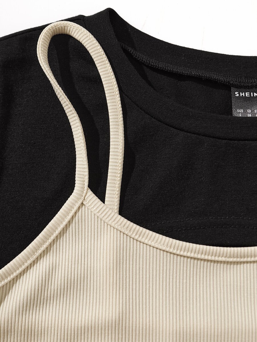 SHEIN Unity High Low Hem Crop Tee & Letter Graphic Cami Dress