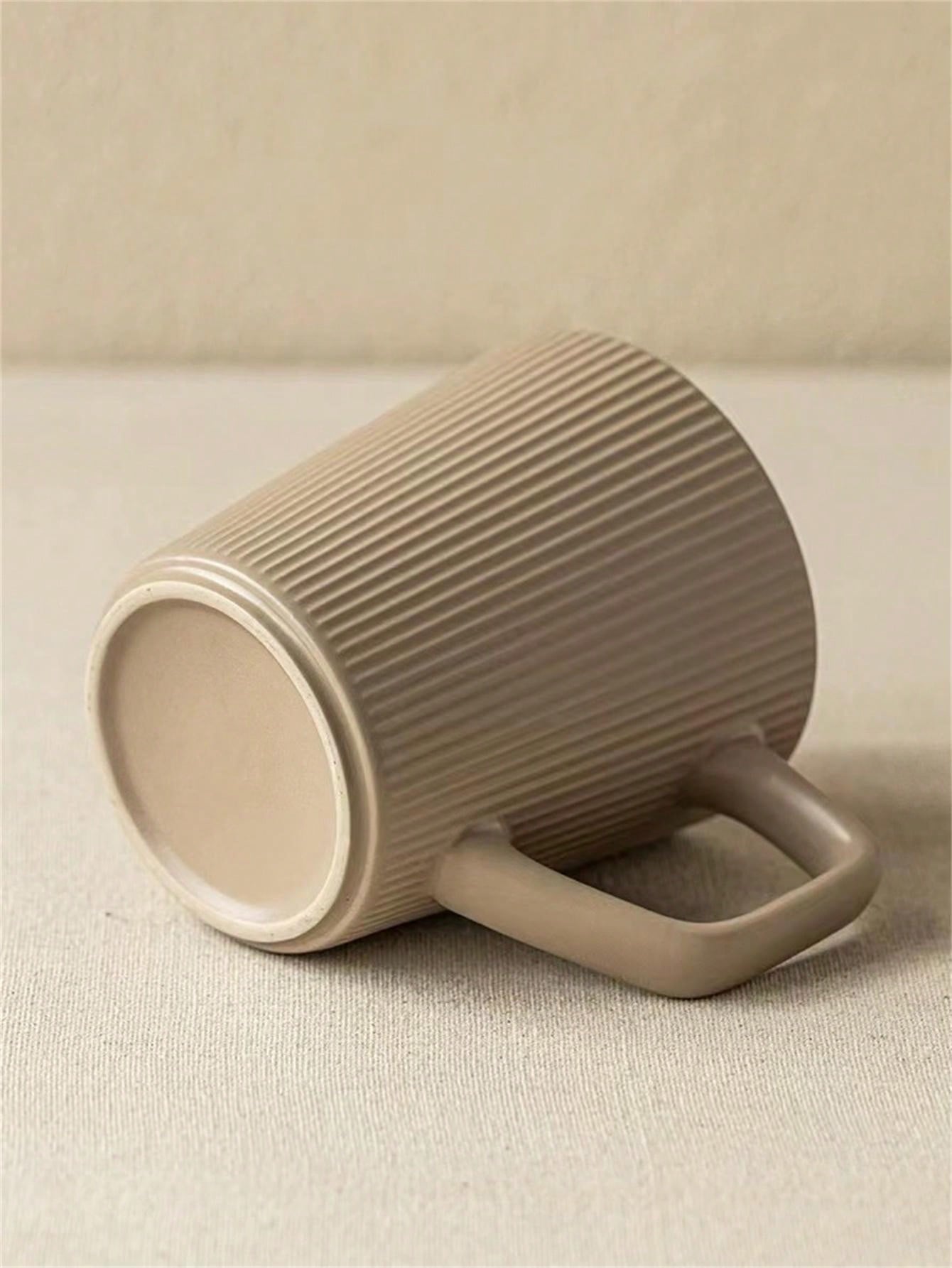 High-Value Nordic Style Ceramic Mark Cup With Vertical Striped Relief Design, Large Capacity Breakfast Coffee Cup For Home Use, 2pcs