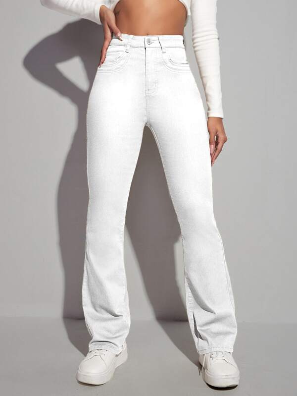SHEIN EZwear High Waist Bleach Wash Flare Leg Jeans
