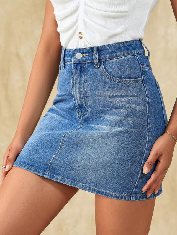 SHEIN Frenchy High Waist Bodycon Denim Skirt