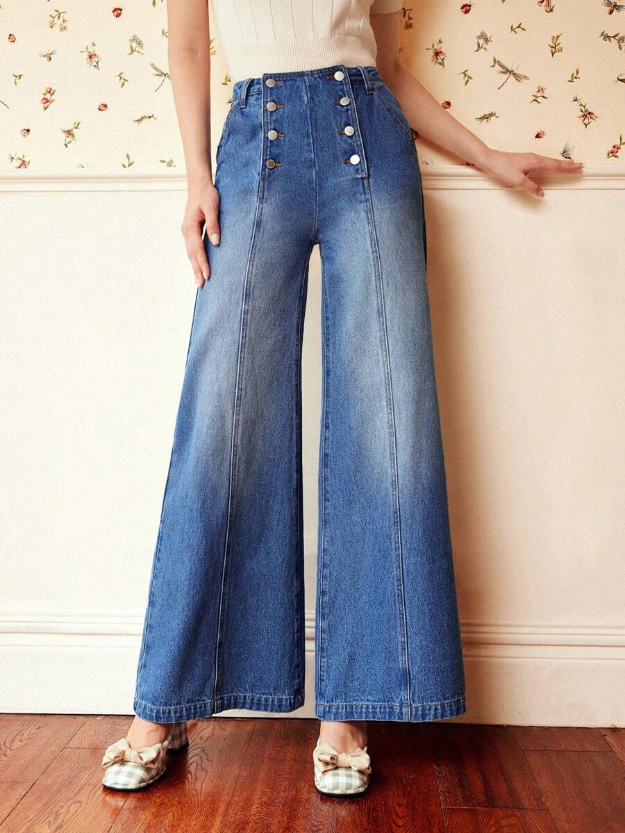 SHEIN DECDS High Waist Button Fly Wide Leg Jeans
