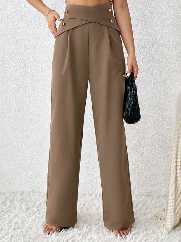 SHEIN Privé High Waist Criss Cross Wide Leg Pants