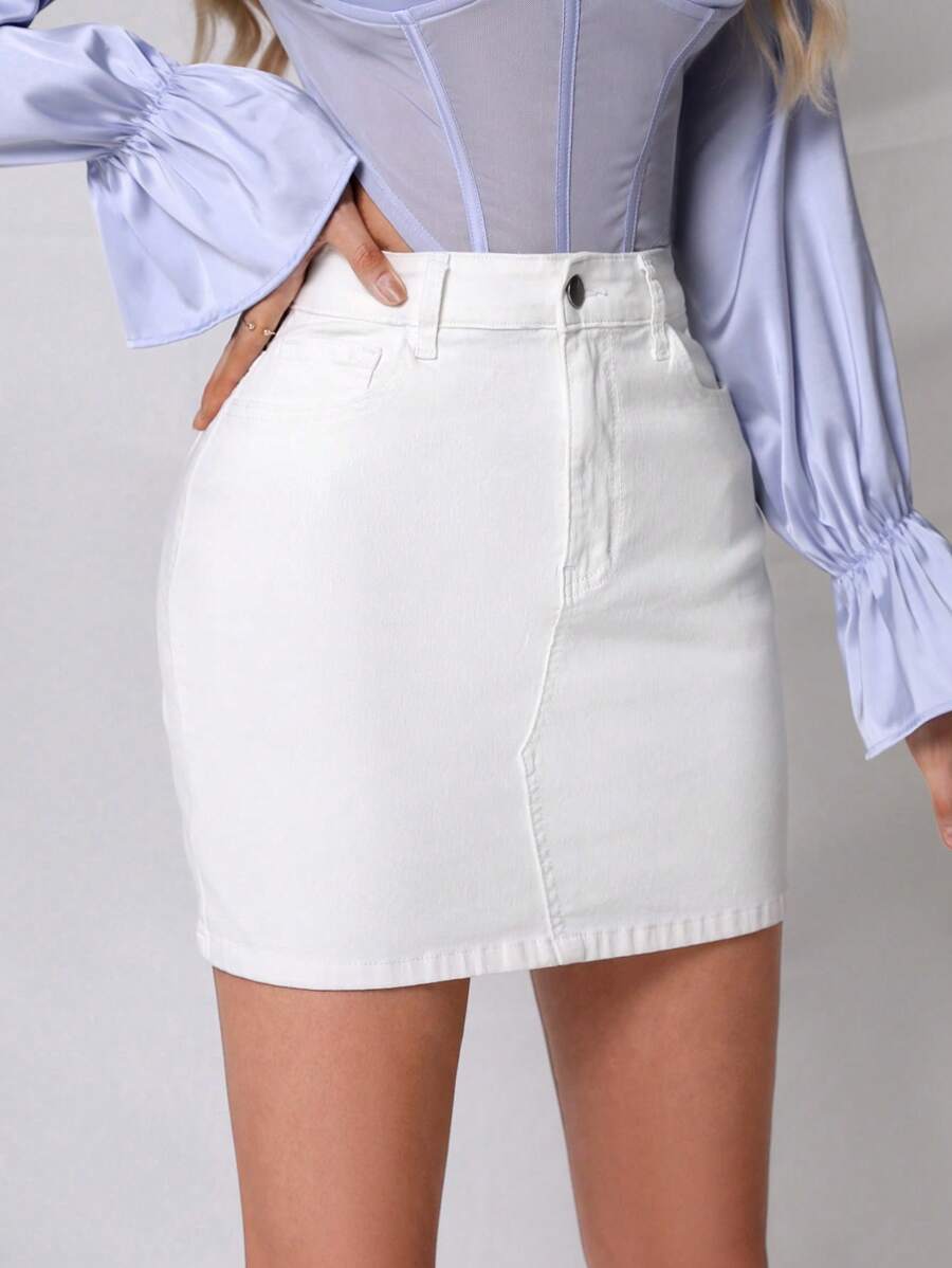 SHEIN Privé High Waist Denim Skirt