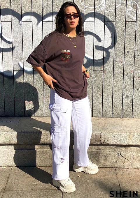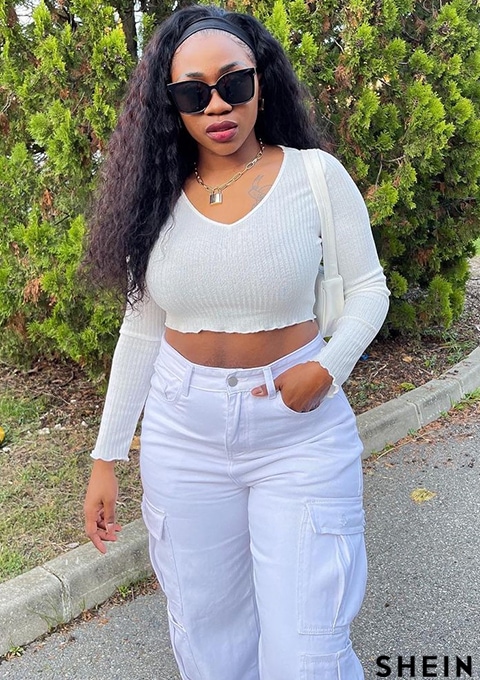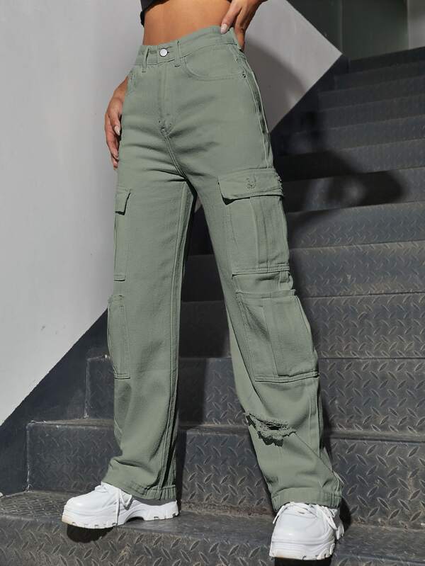 SHEIN EZwear High Waist Flap Pocket Ripped Jeans