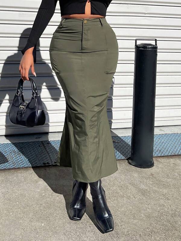 SHEIN SXY High Waist Mermaid Hem Split Back Skirt