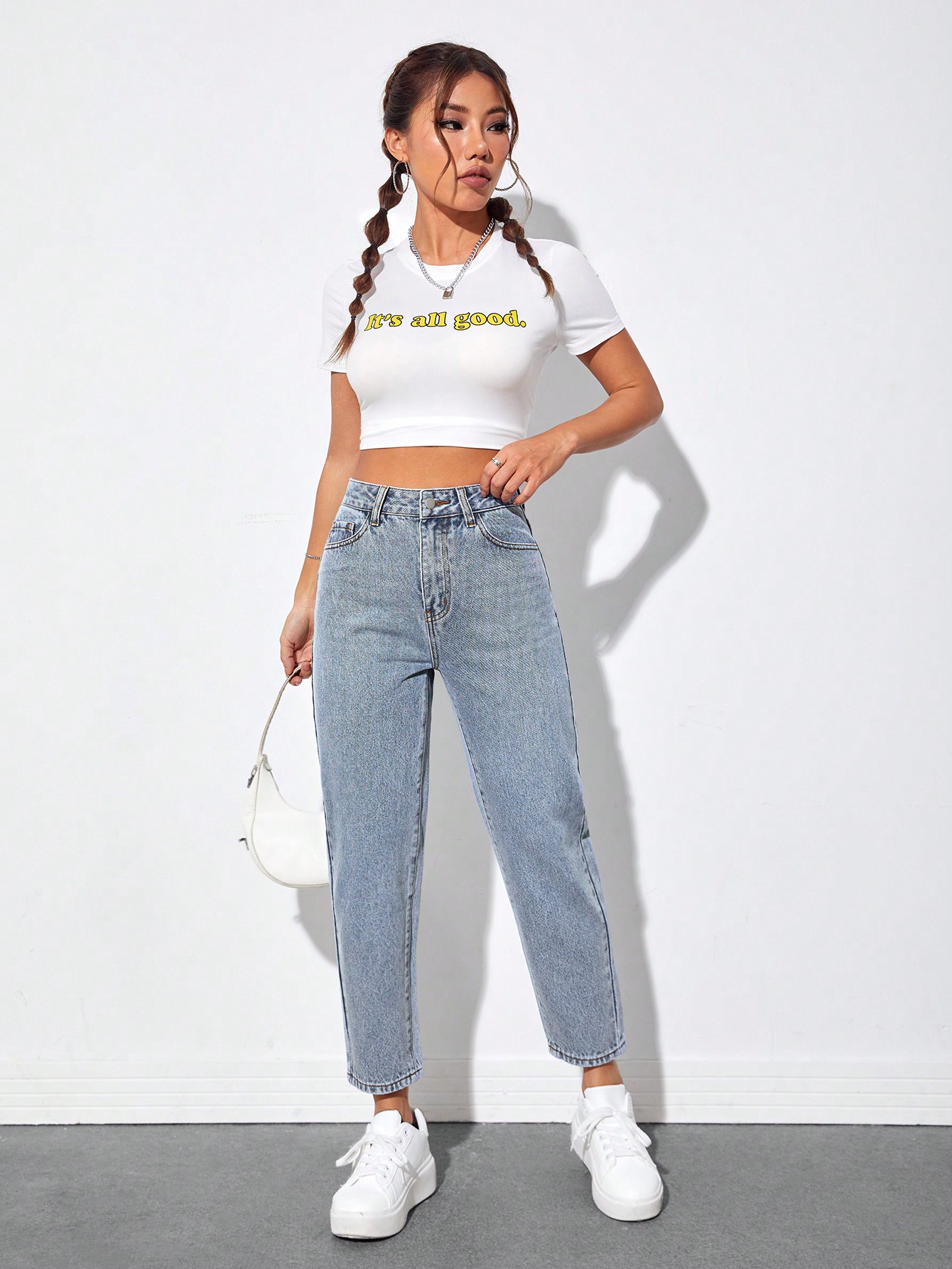 SHEIN PETITE High Waist Mom Fit Jeans