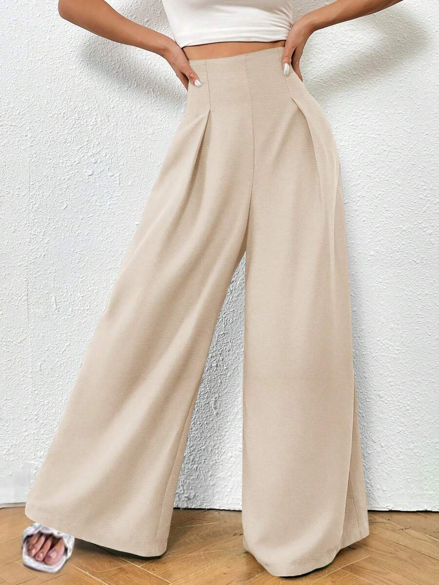 SHEIN LUNE High Waist Plicated Detail Wide Leg Pants