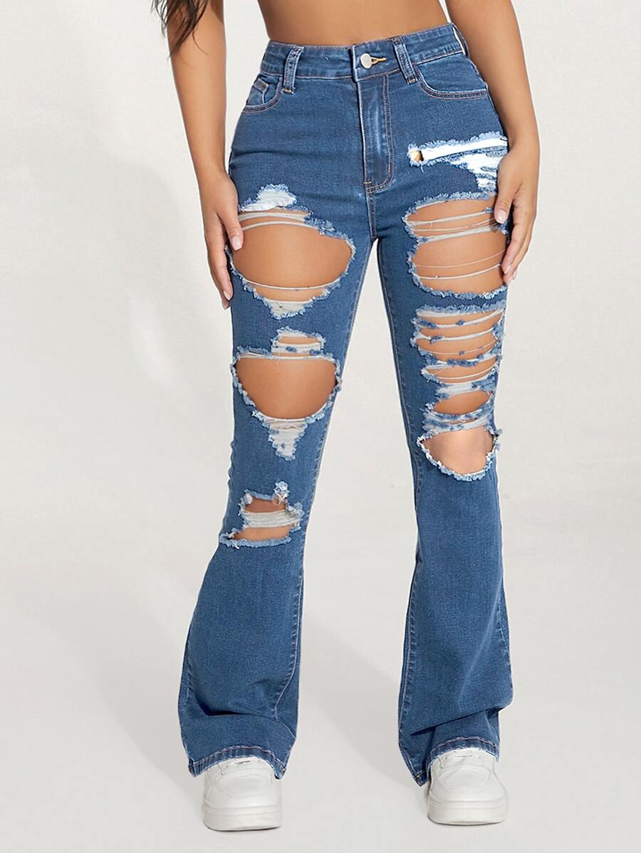 SHEIN PETITE High Waist Ripped Flare Leg Jeans