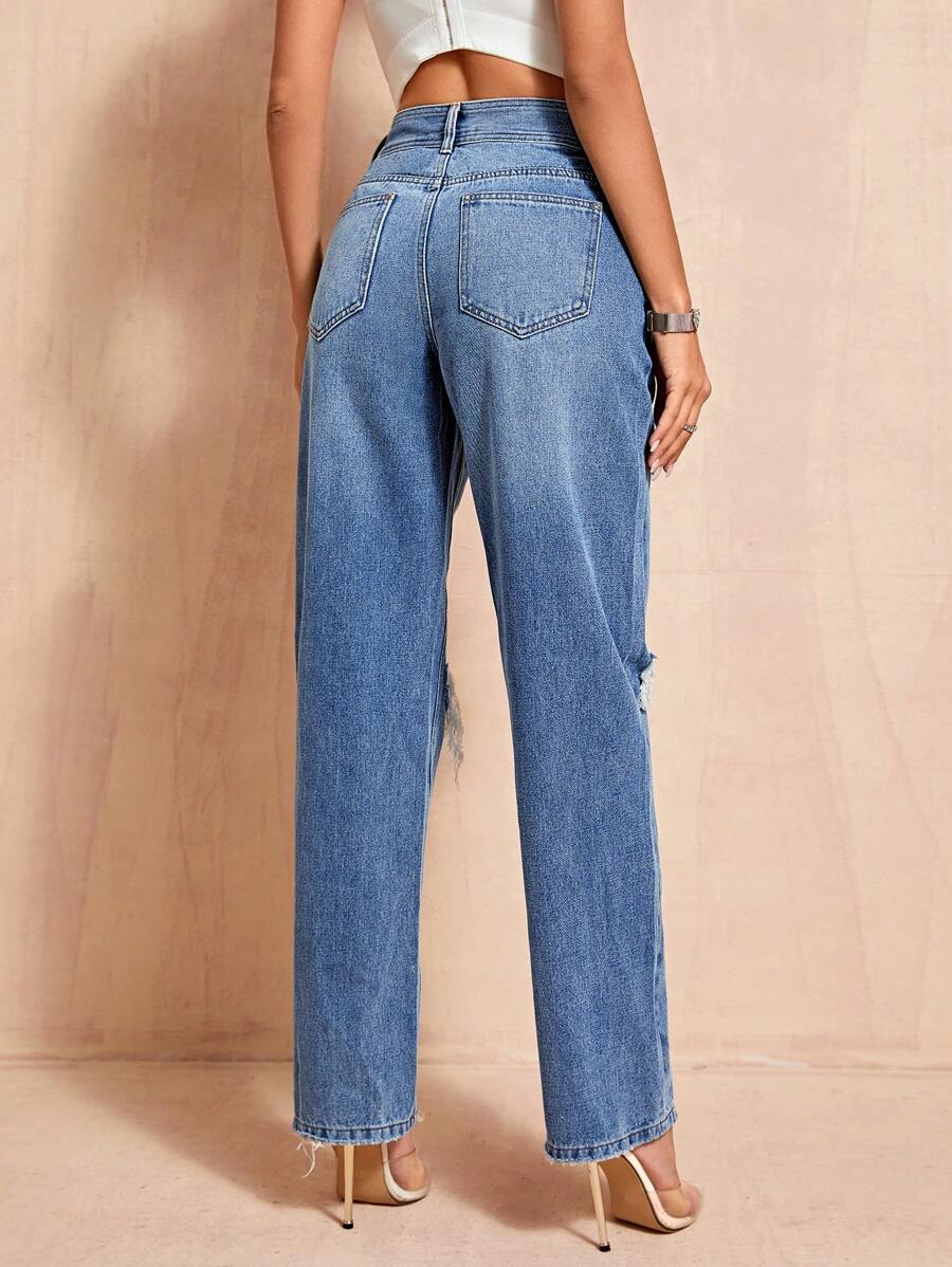 SHEIN BAE High Waist Ripped Straight Leg Jeans