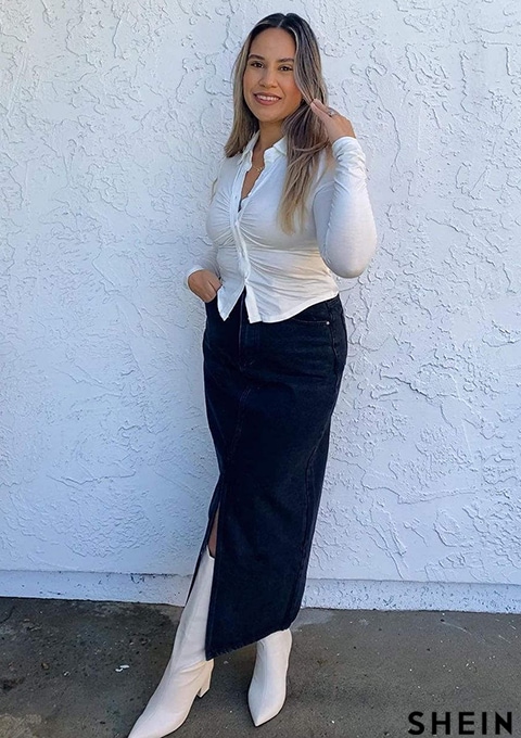 SHEIN EZwear High Waist Slit Denim Skirt