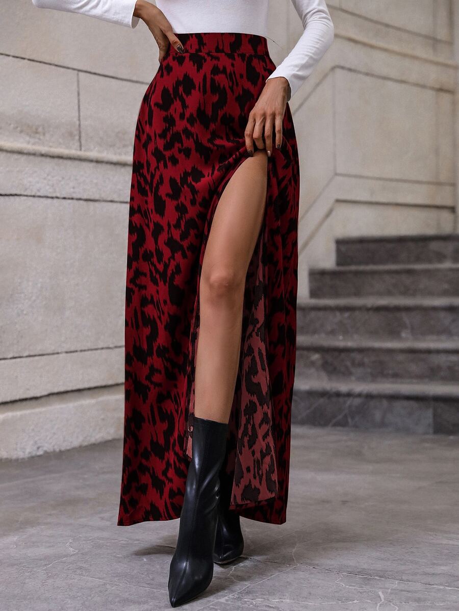 High Waist Split Thigh Skirt