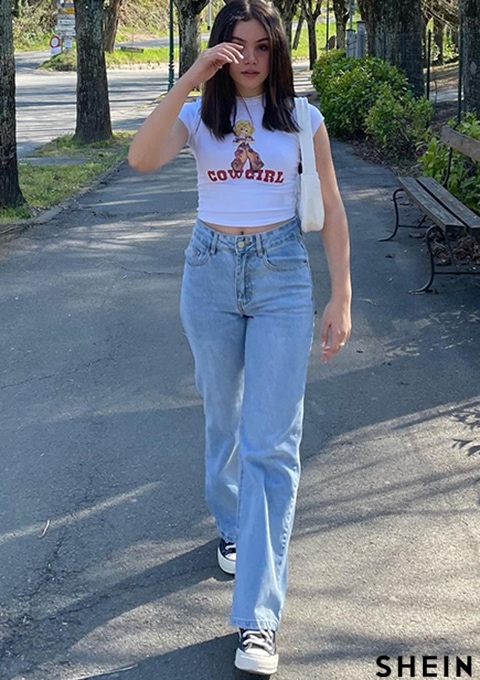 SHEIN Frenchy High Waist Straight Leg Jeans