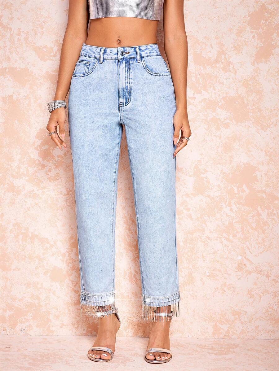 SHEIN BAE High Waist Tassel Decor Jeans