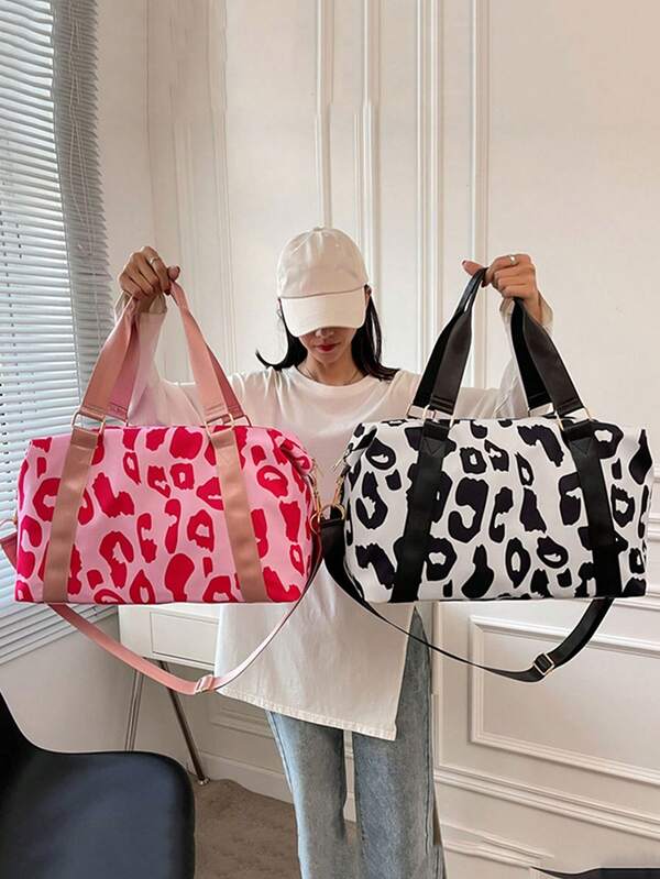 Holiday Over Night Luggage Travel Duffel Bag With Leopard Pattern,Large Capacity Waterproof Gym Bag, Weekend Carry-On Handbag With Dry And Wet Separation,Casual Portable Shoulder Bag For Business,Vacation,Outdoor,Skiing,Yoga,Exercise Fitting Traveling Bag