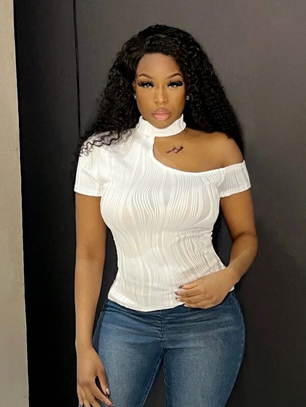 SHEIN Slayr Hollow Out Detail Solid Color T-Shirt