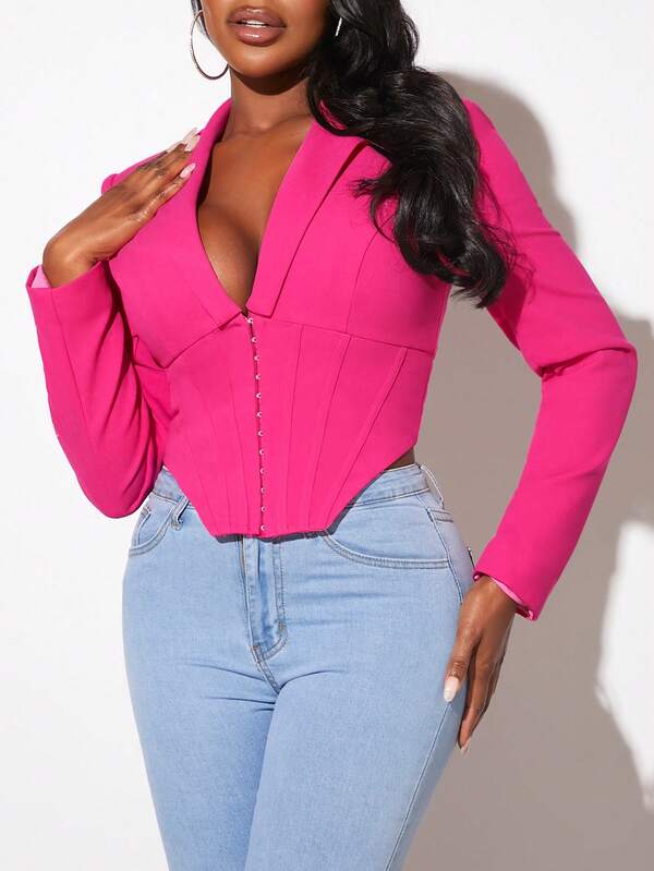 SHEIN Slayr Hook And Eye Front Asymmetrical Hem Blazer