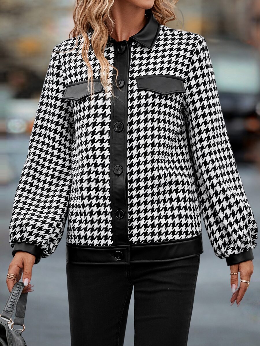 SHEIN Unity Houndstooth Flap Detail Bishop Sleeve Jacket