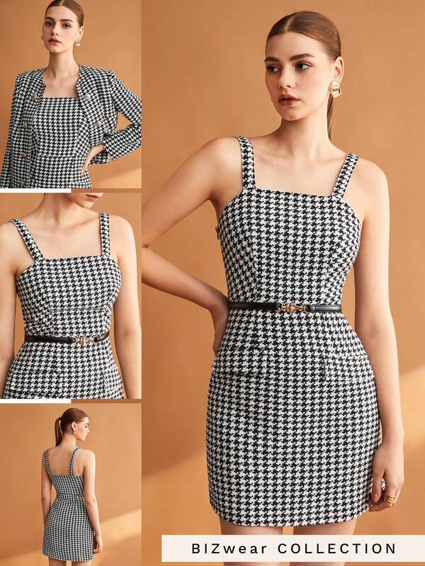 SHEIN BIZwear Houndstooth Print Cami Dress Without Belt