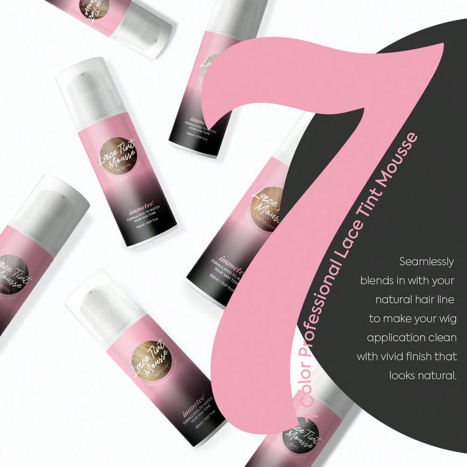 Immetee Wig Lace Dye Mousse, One-Time 7-Color Wig Lace Dye Spray, Instantly Cover Hair Roots, Wig Cover Hair Dye Mousse, Wig Lace Melting Spray, Quick-Drying Hair Dye Root Spray 150ml