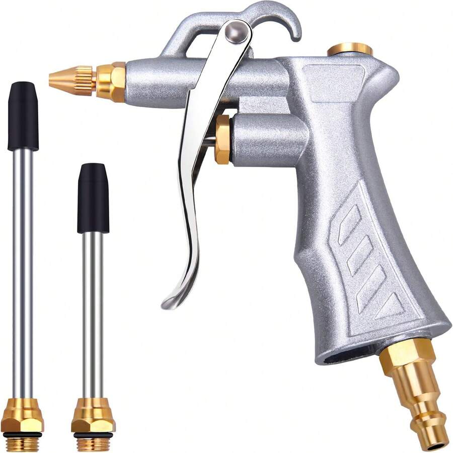 Industrial Air Blow Gun with Brass Adjustable Air Flow Nozzle and 2 Steel Air flow Extension, Pneumatic Air Compressor Accessory Tool Dust Cleaning Air Blower Gun