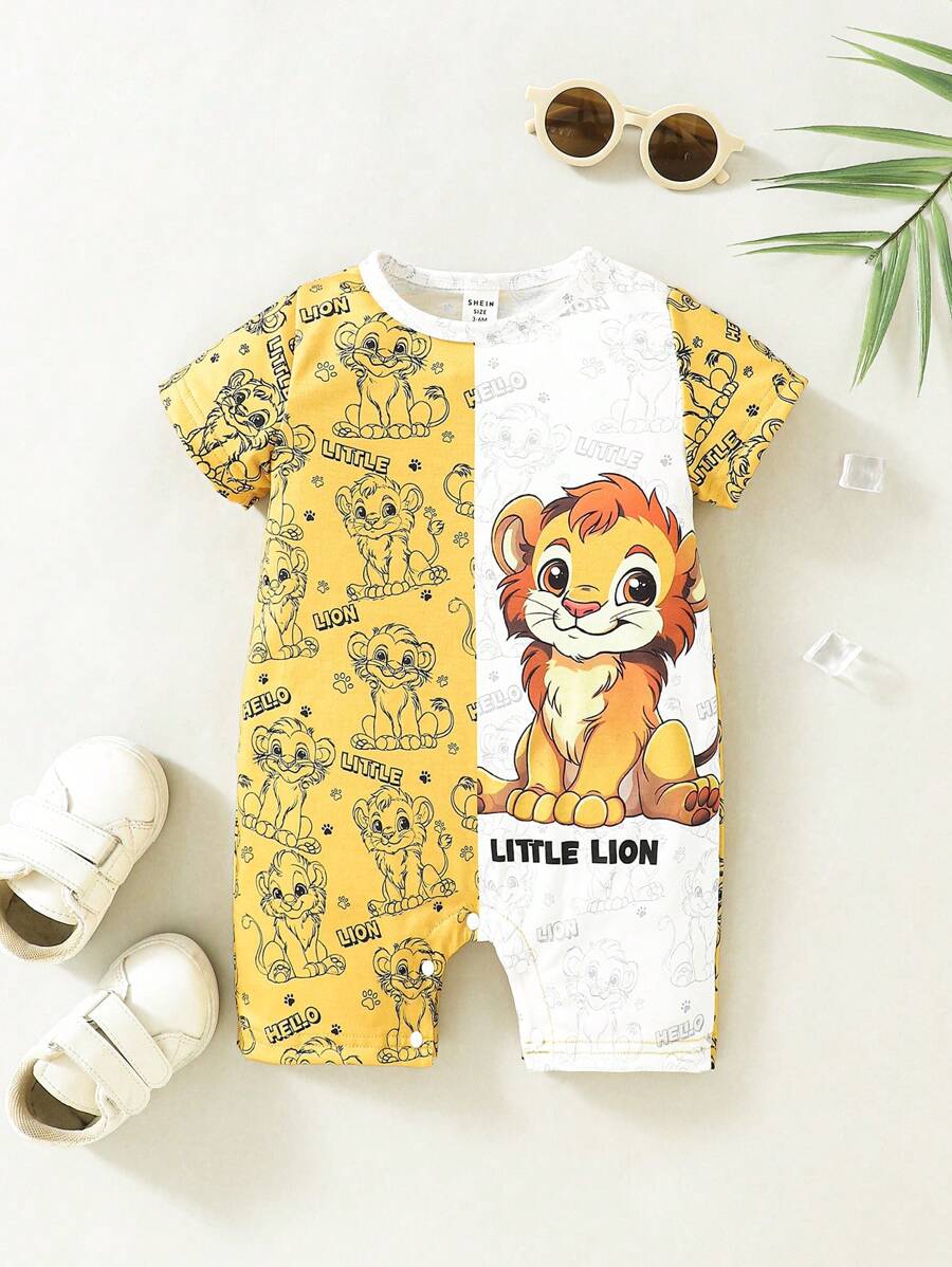 SHEIN Infant Boys' Casual Cute Fun Lion Printed Romper