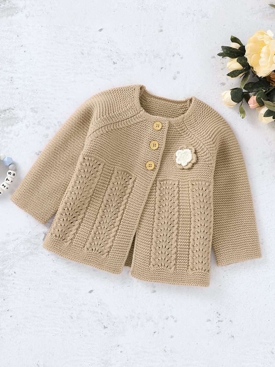 Infant Girls' Floral Applique Drop Shoulder Cardigan With Front Buttons