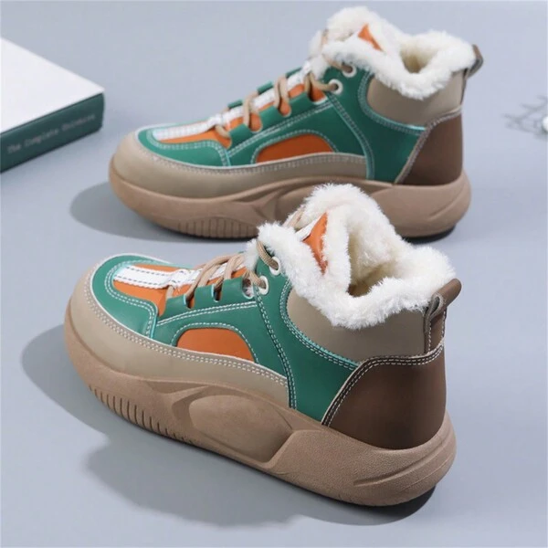 Ins Korean Style 2023 Winter New Arrivals Plus Velvet Women'S Shoes Warm Snow Boots, Chunky Sneakers, Running Shoes, Thick Sole Platform, High Top Shoes For Students