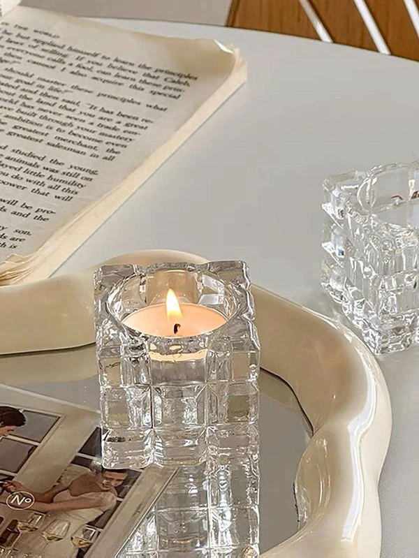Ins Style Glass Ice Cube Candlestick Vintage French Decorative Candle Holder