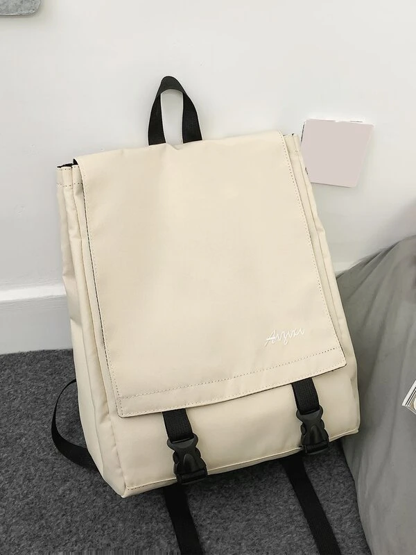 Ins Style Waterproof Flap Closure Workwear Japanese Style Backpack For College Student With Solid Color Casual Travel Bag