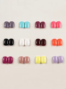 Cute And Vibrant Short Round Fake Nails 288Pcs In 12 Colors Diy Nails Multi-Color Combination for Women Girls Daily Wear In