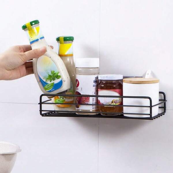 Iron Storage Rack, Suitable For Kitchen Storage, Home Decor And Kitchen Adhesive Storage Rack, No Need To Drill, Bathroom Storage Shelf, Wall Hanging Shower Rack