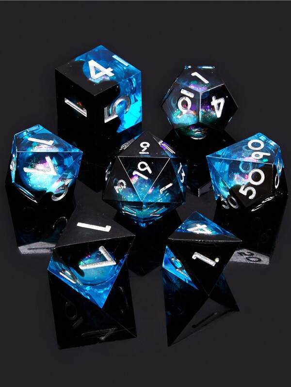 JOYLORD Liquid Core D&D Dice Set - 7 Piece Quicksand Sharp Edged Polyhedral Dice - Dungeons And Dragons Dice Set For D&D RPG - D20 D12 D10 D8 D6 D4 Resin DiceRPG Role Playing Game Resin D&D Dice Set