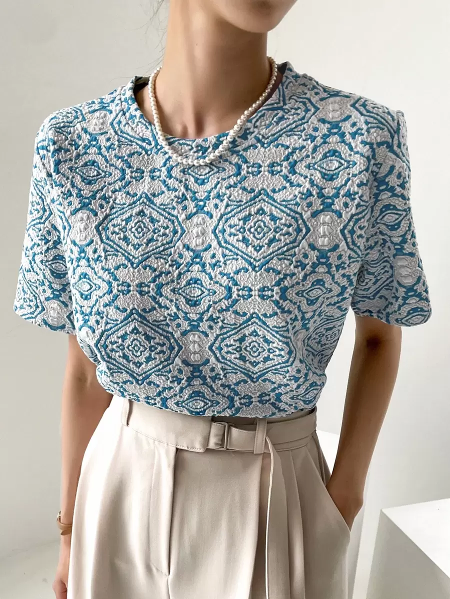 FRIFUL Jacquard Short Sleeve T-Shirt