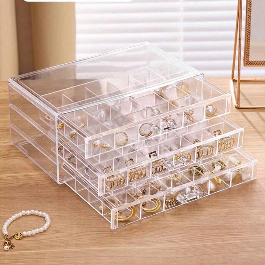 Jewelry Storage Box With Multiple Layers And Compartments For Earrings, Rings And Necklaces, Dustproof Portable Display Case