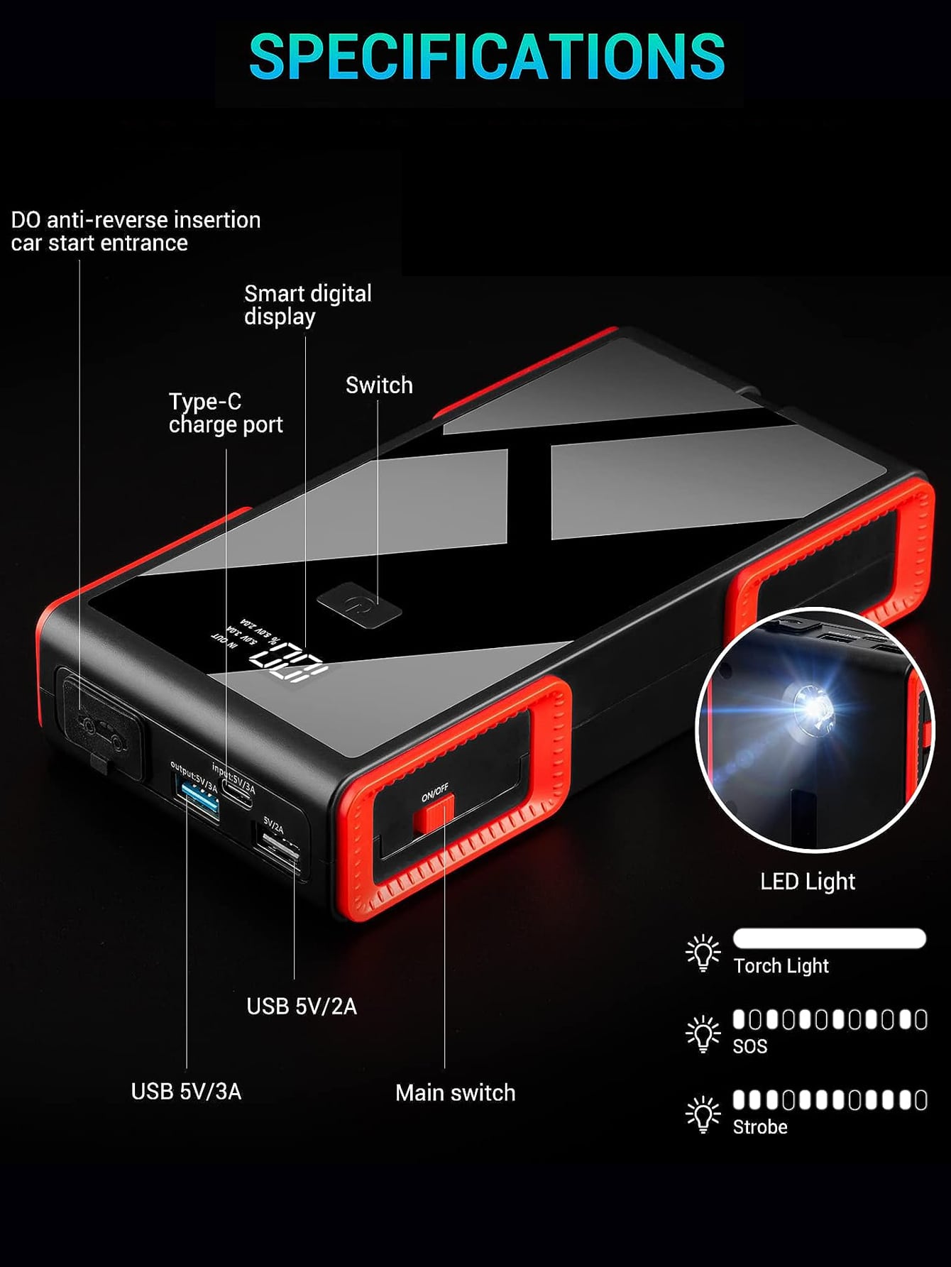 Jump Starter, 4500A Peak 22000mAh Lithium Car Jump Starter Battery Pack For Up To 9L Gas Or 7L Engines,Safe 12V Portable Battery Starter Power Pack With Full Screen & LED Light