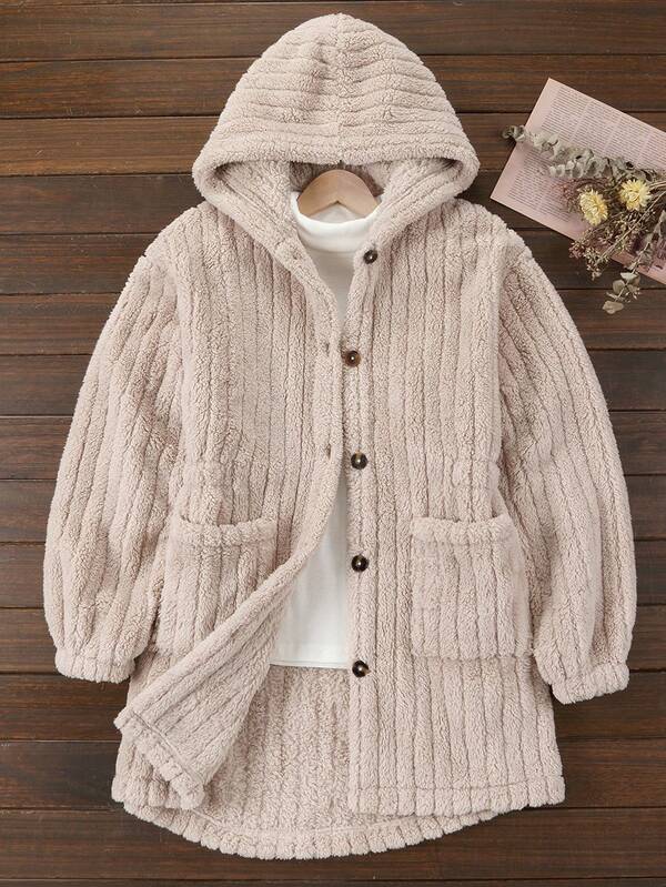 Juniors' Button Front Hooded Fleece Coat For Girls