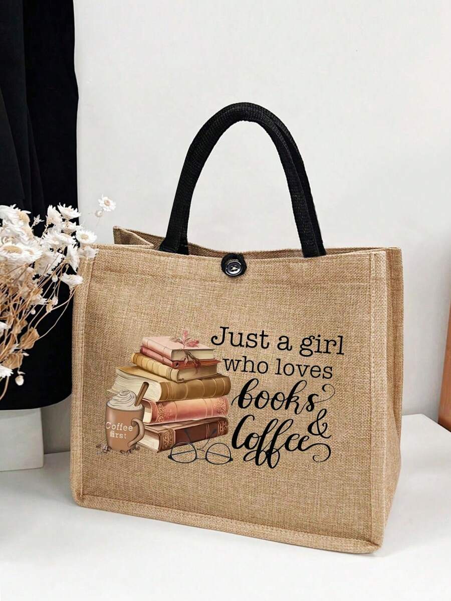 Just A Girl Who Loves Books Letter Linen Tote Bag, Funny Gift Letter Pattern Elements, Sister Gift, Storage Bag, Women's Linen Large Capacity Tote Bag, Graduation Gift, Letter Print Fashion Teacher Tote Bag, School Gift For Friends And Besties Gift, Gift For Teacher, Gift For Mother, Aunt, Suitable For Personal Travel Cosmetics, Shopping Bag, Large Capacity Storage, Beach Vacation,Shop Funny Gifts Gifts For Teachers