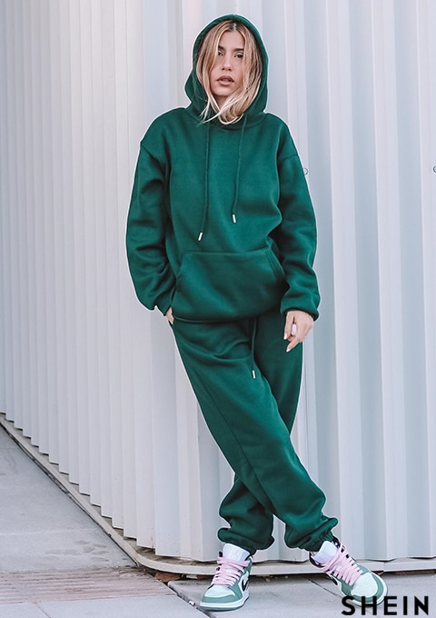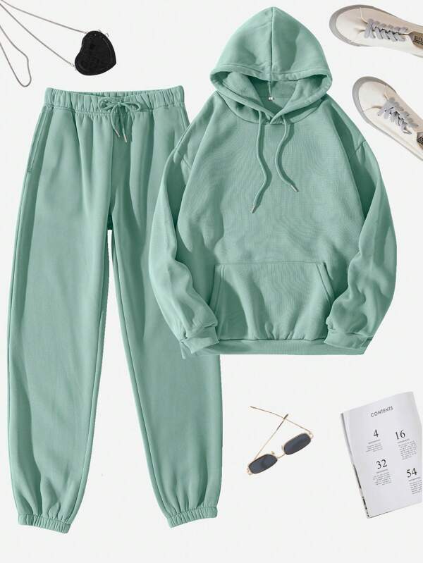 SHEIN Essnce Kangaroo Pocket Drawstring Hoodie & Sweatpants