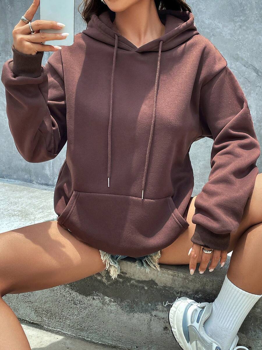 Kangaroo Pocket Drop Shoulder Drawstring Hoodie