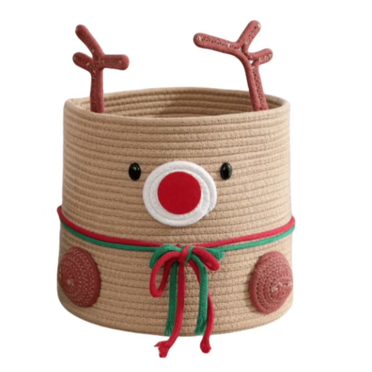 Khaki Reindeer Design Rope Woven Storage Basket, Large Capacity Laundry Hamper For Home Organization