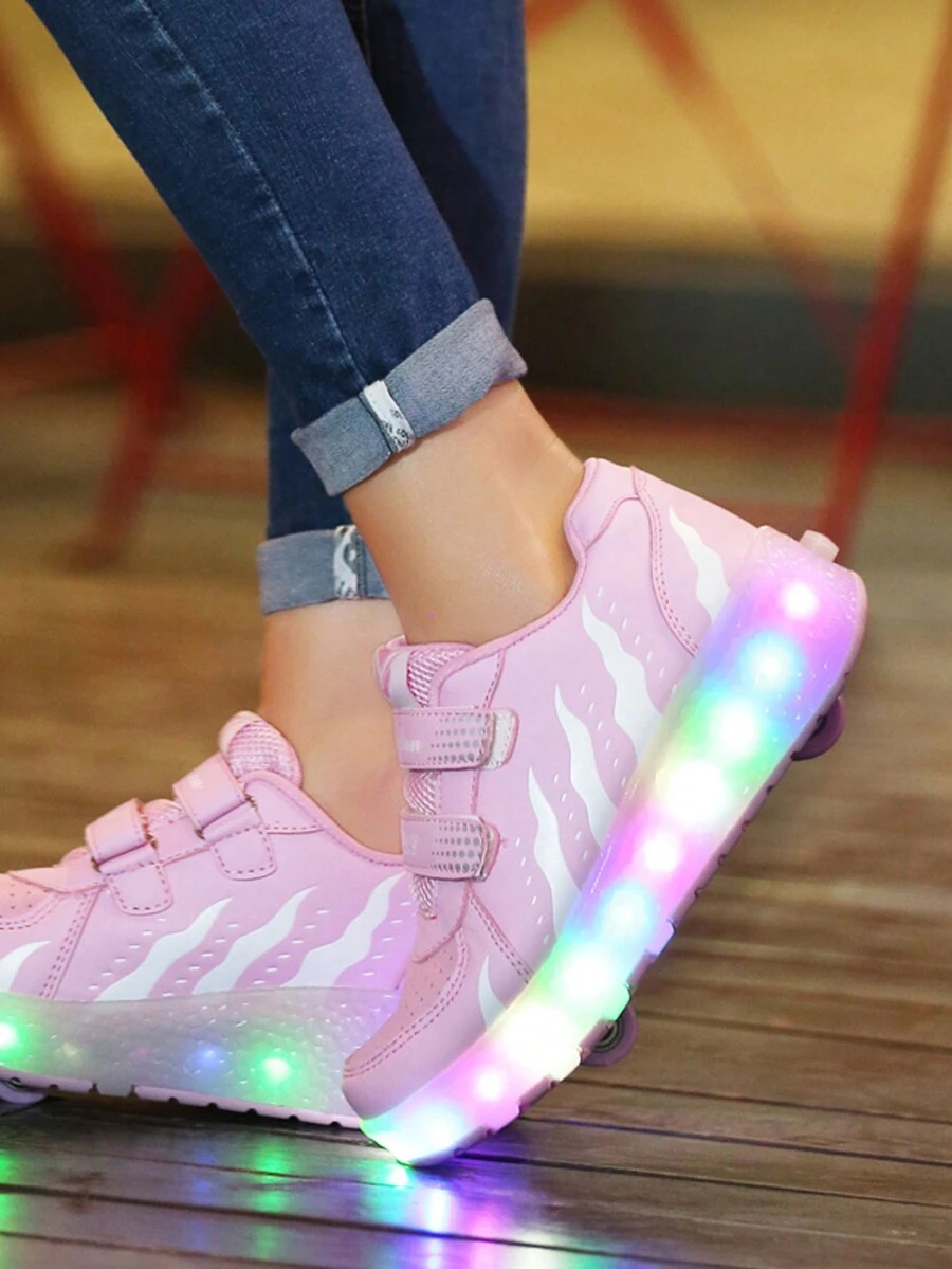 Kids' Autumn & Winter Double Wheels Led Shoes With Multiple Modes, Adjustable, Rechargeable, Sports Sneakers