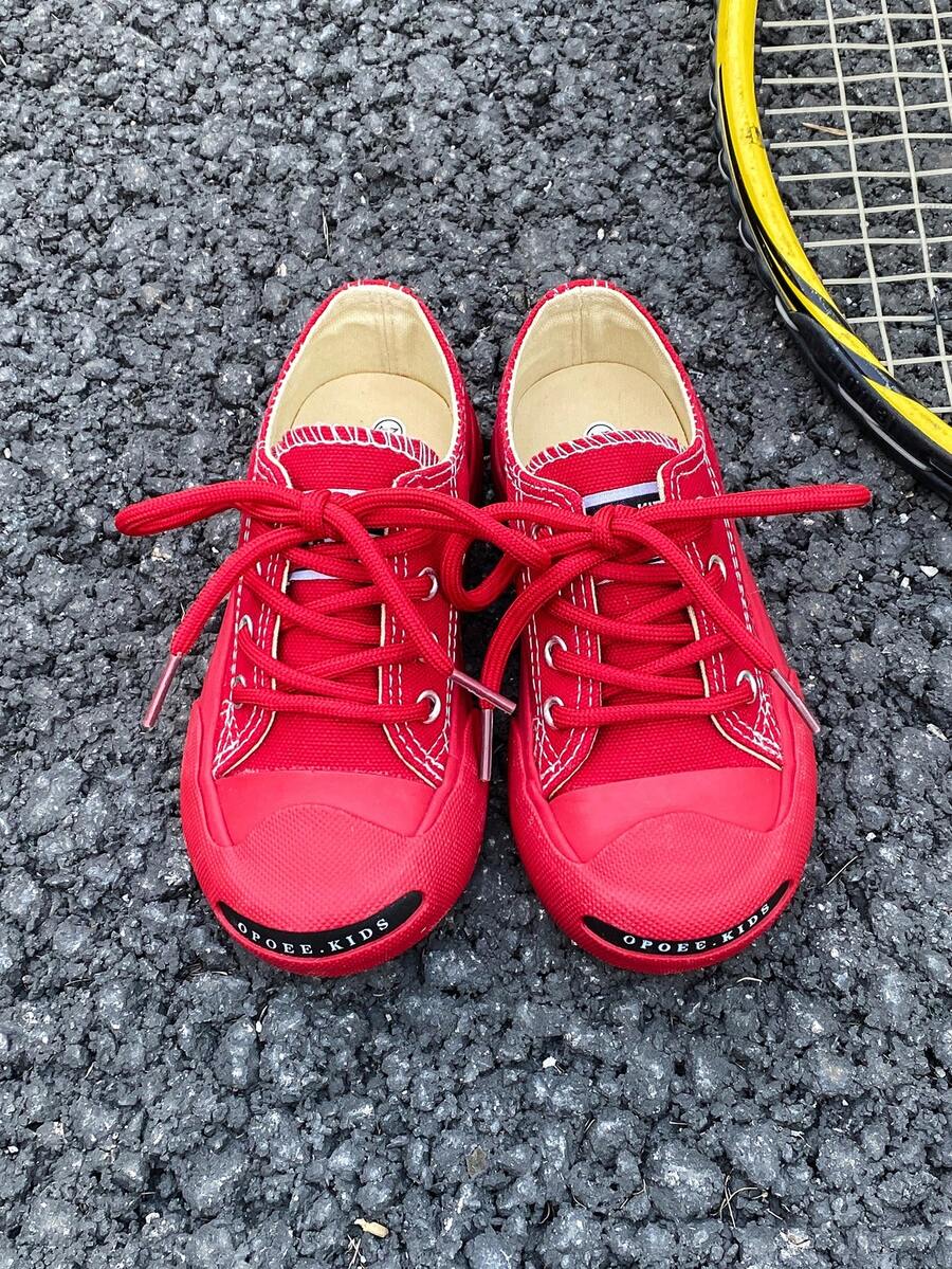 Kids' Canvas Sport Shoes For Spring & Autumn, Korean Style Casual Low-Cut Tie-Up Shoes, Classic Canvas Skate Shoes For Children